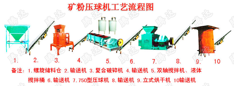 礦粉壓球機工藝流程介紹:
