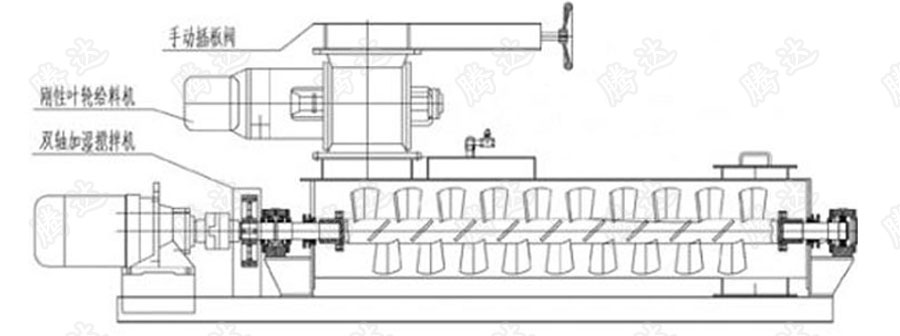 三軸攪拌機主要由機殼、螺旋軸總成、驅動裝置、配管、蓋板、鏈罩等部件組成,具體結構性能特點如下:
