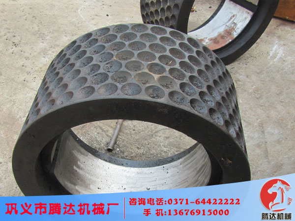 壓球機輥皮是壓球機型煤設備中必不可少的一個重要構件,壓球機輥皮決定了壓球機壓制成型的形狀,壓球機輥皮是包括在壓球機輥芯外部的一層表層挖有球窩的圓筒形狀的構件。根據裝配方式的不同分為一體式和分裝式。